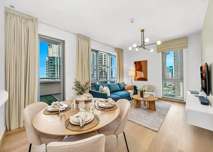 Die 92 m² großen The Skyline Suite Luxury Downtown Retreat Dubai bietet einen Swimmingpool und eine Terrasse und liegt im Stadtviertel Kōtō von Dubai, nur 1 Kilometer von der Dubai Mall entfernt. Green Art Gallery liegt in lediglich 300 Meter Entfernung und armani ist vom Apartment aus zu Fuß zu erreichen.